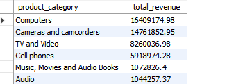 For the last question I calculated the profit margin, grouped by the product category and used the CASE expression to return the level of the profit margin which were high, mid or low.